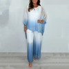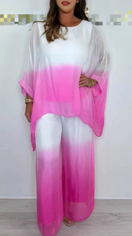 Package Includes:1*Mesh Mix Dip Dye Loose Flowy Top & Trouser Set