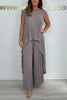 ⏳Limited time 50% OFF🔥Laney Pleated Short Sleeve Irregular Midi Top and Elastic Waist Wide Leg Pants Set✨